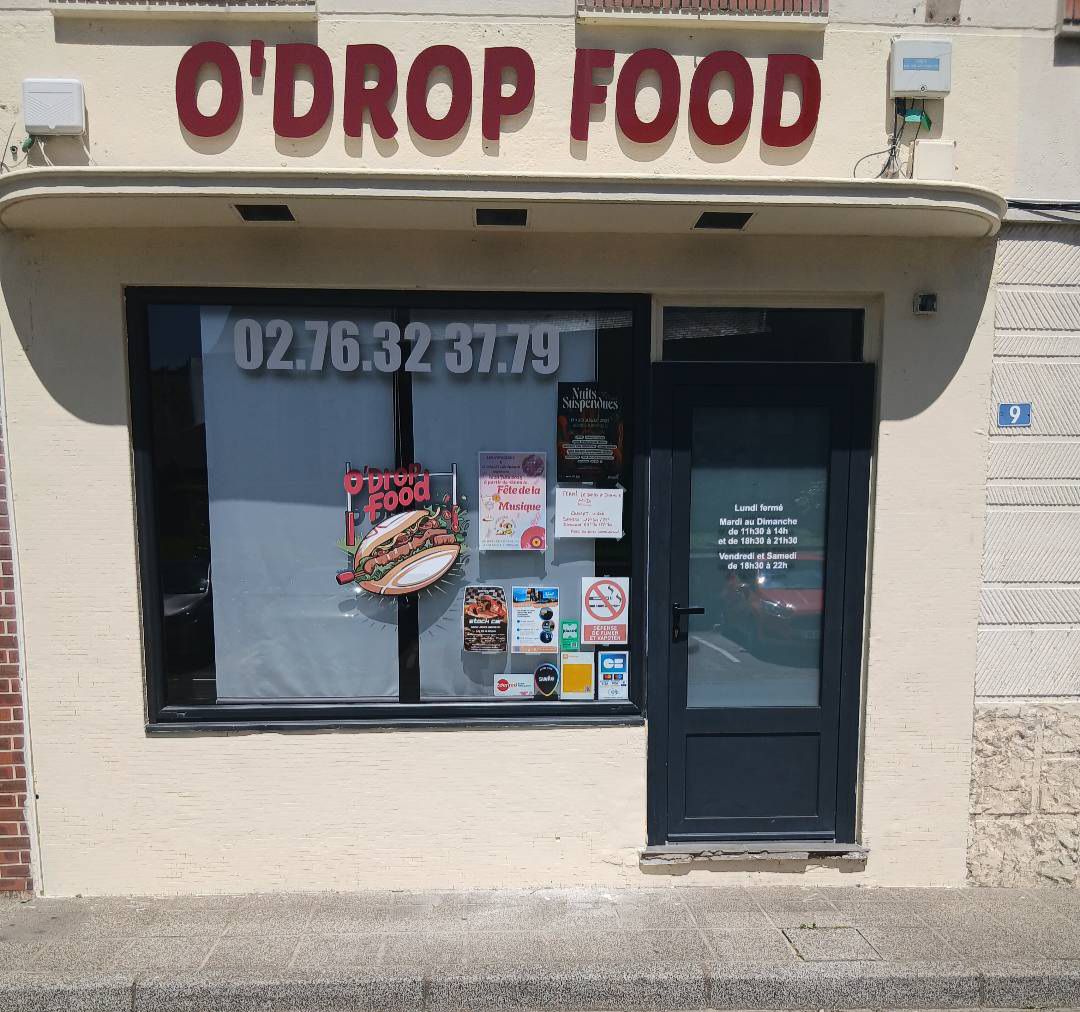 CommerceO'DROP FOOD Restauration à emporter Adresse : 9 rue de l Europe76280 Angerville l Orcher Tél : 02 76 32 37 79 odropfood@gmail.com Facebook Sur la cartoO'DROP FOOD Precedent Retour à la liste Suivant